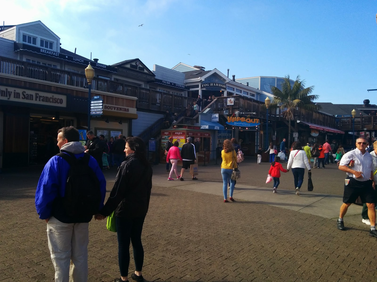 I then headed over to the Embarcadero and wandered my way past the various piers. I asked my friend if she could meet me at Pier 39, a big shopping and entertainment center I had interest in seeing. It was a cool area, full of neat specialty shops from a chocolate store (that had chocolate coated twinkies I just had to try to say I had) to a magic shop to a hat store with a model of the sorting hat and other such silliness. I even sat down and watched Frisco Fred perform a rather humorous and decently skilled performance. His fire juggling, card tricks, and stage performance were all very good. Though he did botch his Houdini style straightjacket escape a little. But with grace that made no feelings of failure about it. I threw in a couple dollars to his tips basket at the end. It was hard not to with his well given, well humored speech guilting us all to give. I ended up staying at the Pier for quite awhile, ducking into different stores to avoid the chill wind, as my friend got stuck in traffic thanks to 4/20 and all the stoner convention stuff happening.