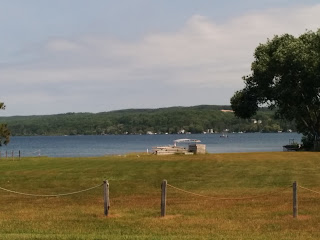 There was no wonderfully solitary bike path today, sadly. But most of the time I was on roads with either good shoulder or little enough traffic I was okay without. I took a little time to see the beach in Ludington, then headed on from the little town. Google directed me to a short stretch of dirt road on Quarterline Road, but it was so well smoothed it was almost better than pavement, and that was the only off pavement I did all day. I stopped for awhile in a park in Manistee to enjoy a view of the river and of Manistee Lake. Then I continued on north along the lakeshore. Despite being right next to the lake, and on a road called Lakeshore drive, for most of it trees, or sometimes Lakefront houses, blocked most the lake view most the time. Onekema and its sizeable lake that seemed tiny connected to Michigan (it advertised itself as "A Two Lake Town") was another nice little stopping point. I continued on the Lakefront as far as Arcadia, having to climb a decent hill on the way there, then getting to top out at 36mph (and I could have gone faster if I hadn't wimped out and braked a little around a turn) on the way down into town.