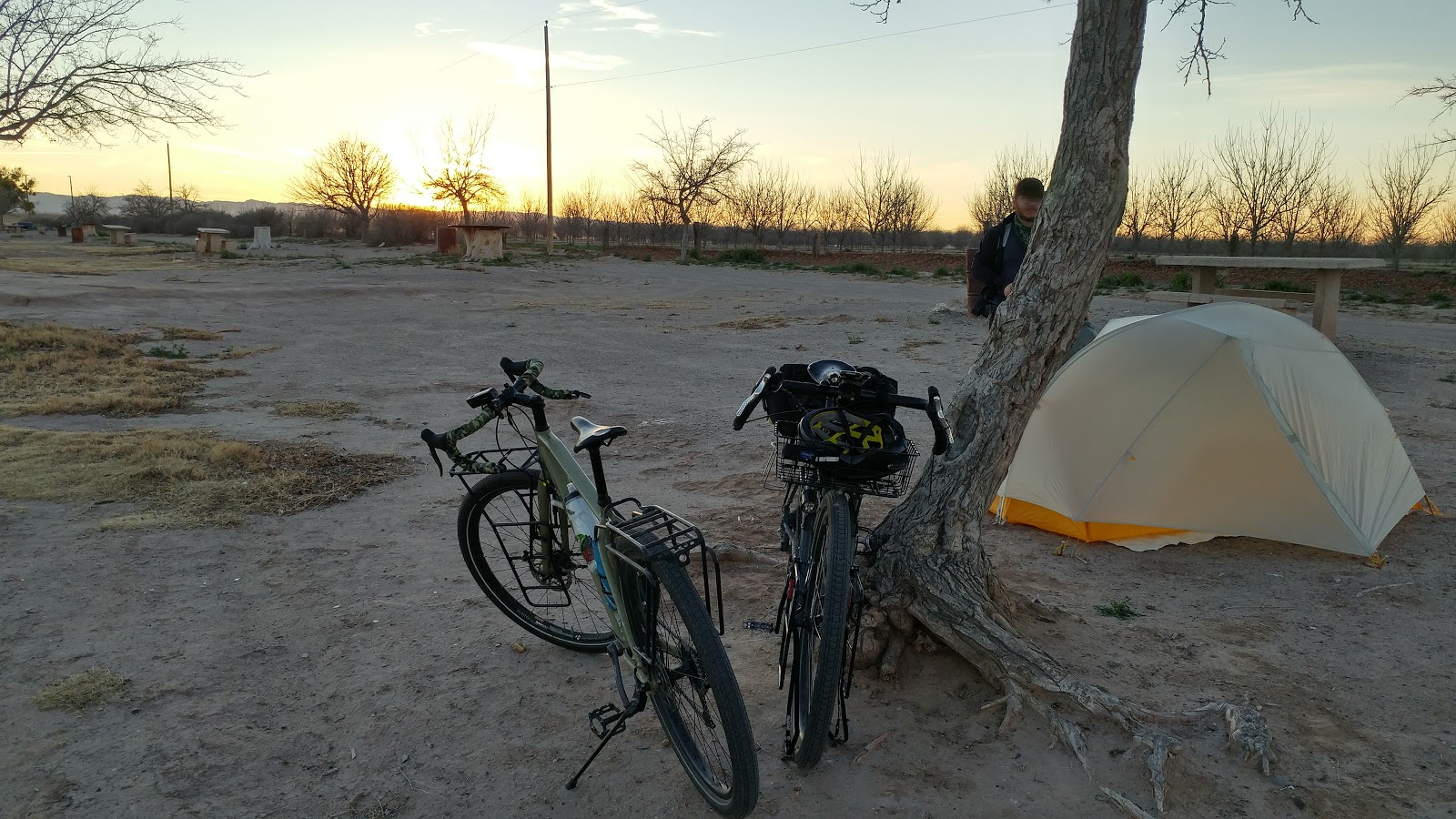 From Las Cruces we biked on through El Paso to camp at Hideaway Lakes in Tornillo. On our way into El Paso, we ran into a cool group of cyclists who warned us the ACA route on Mesa Rd was not the safest, and after some discussion of how to direct us, ultimately ended up just leading us to where we had to go. It was fun riding with other people, and even though I felt like we were going slower than we otherwise would, the miles went by quick in their company. It was easily the most eventful part of the day.