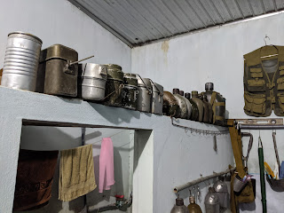 It was a short, easy ride from Hue to Dong Ha that next day, without much to say about it. There I had my first Warmshowers host since leaving Thailand. I had a little trouble finding the alley they lived down, but a neighbor kindly directed me. It was a really good experience staying with him and his family. He has plans to travel around Thailand, and amongst other things, we chatted about my experiences there and the differences from Vietnam. He directed me to a wonderful vegetarian restaurant, recently open, unknown to Google Maps, at a beautiful location by a pond full of water lilies. After coming back, I met his friend who lives there, and got to see his collection of war artifacts. He would buy them from local merchants and homes (a picker as we might call him in the US, like that show). It was impressive, though also difficult to look at his collection of things like US mortar shells as anything but a sad remnant of a bloody war on this beautiful country. He looked at my belt, and gifted me one he said was better, US Army issue. He had me put it on right there, while I felt humbled and a little awkward. My host and his family shared a nice dinner with me in the evening, sitting not at the table inside, but on the front porch, legs crossed, a bit of a different experience for me. I embarrassed myself with chopsticks and was offered a spoon. My host didn't know they used fork and spoon primarily in Thailand, with chopstick use being rare there. During dinner we watched the TV as they talked about the Iranian missile strike. I am very far from Iraq, but somehow being abroad, the dread of possible war, after seeing those remnants displayed just hours before, felt even more potent. I was invited to go to a fair with the family, but I felt the need to retire to my room, talk to Rachael, and prepare for the next day. The bed was hard, and the dogs woke me at times, but the good evening was well worth it.